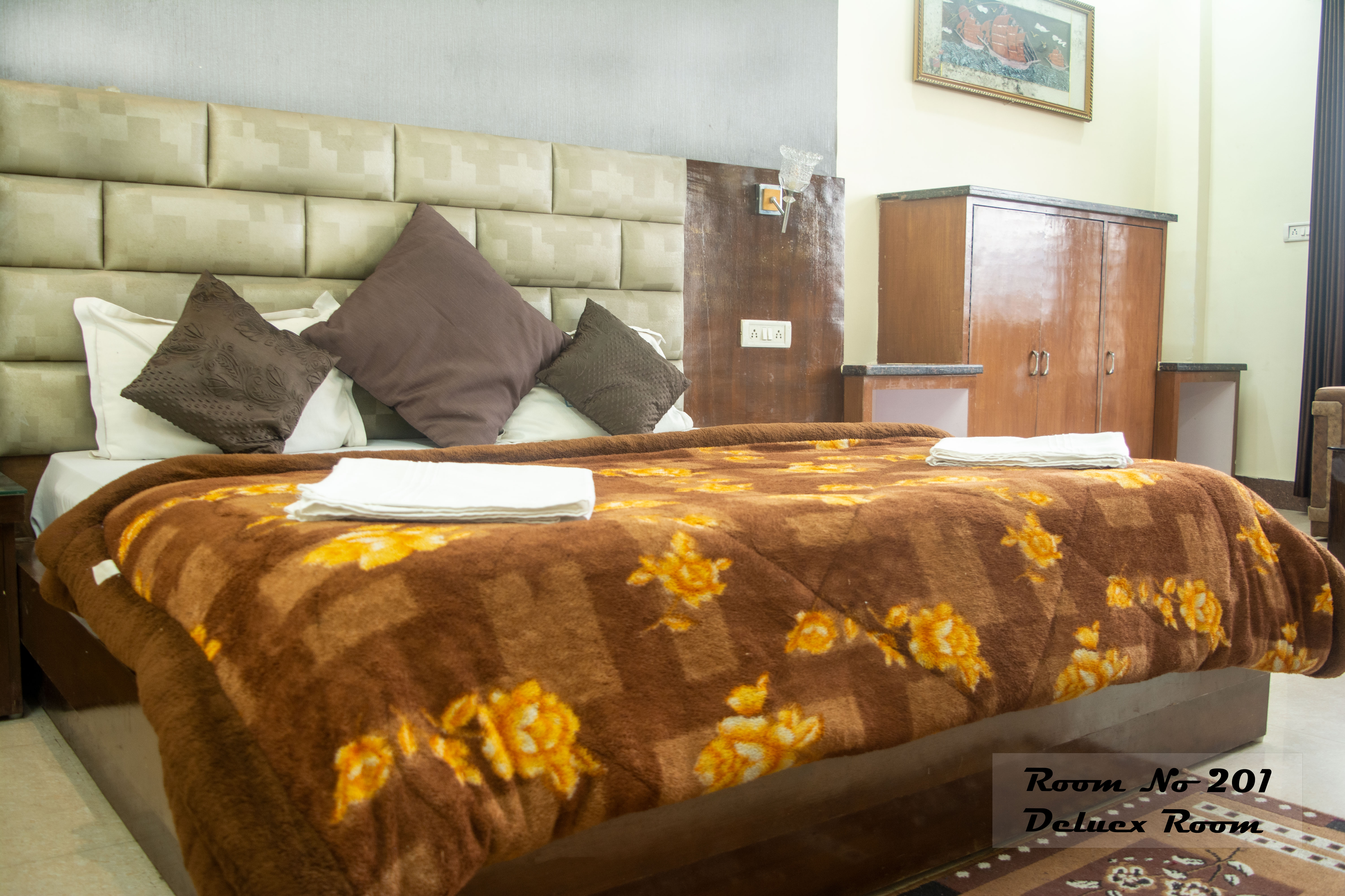 Room no 201 is our superior deluxe room. Room is on 2nd floor with Window view as well as on common open terrace also. Which make this room a good choice for guests who want to enjoy the wonderful ganga view from the room within and want to enjoy the Har ki Pauri view. From terrace.